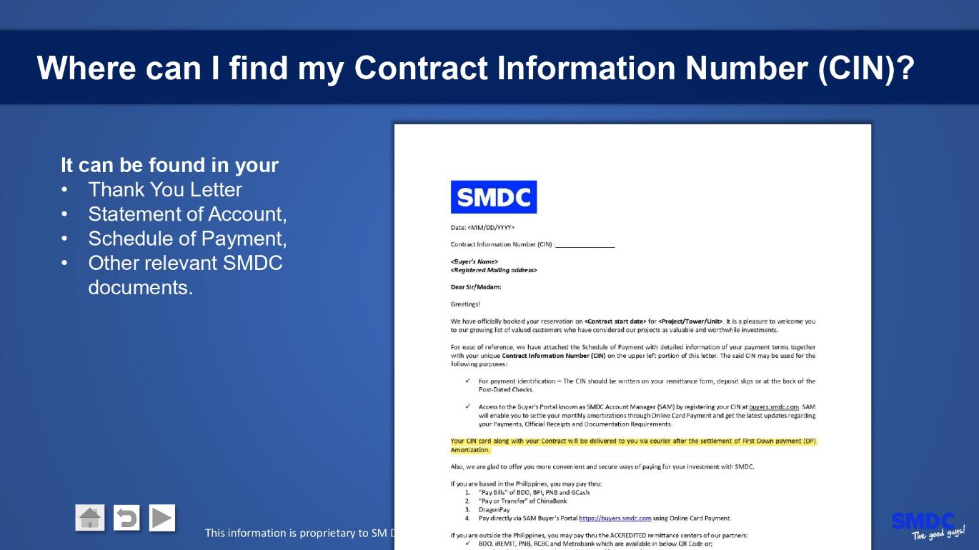 After you pay the reservation fee and submit all necessary documents, SM Development Corporation (SMDC) will email your Schedule of Payment (SOP) with payment due dates and amounts. Please prepare post-dated checks for your monthly amortizations as per the SOP and submit them to the SMDC Head Office.